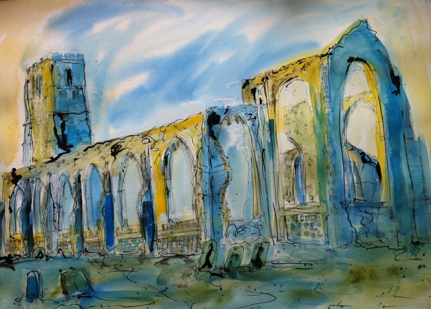 In a previous life as a journalist, I wrote for many years about architecture and design for a variety of magazines and newspapers including The Guardian, The Independent, London Evening Standard, World of Interiors, Homes & Gardens, Architects’ Journal and more. It was a fantastic job and my work touched on everything from galleries, shops, museums and offices to churches, hospitals, restaurants and people’s homes. I always enjoy talking with architects about their ideas and designs, and admire their ability to combine panoramic vision with attention to detail. I’m also a great fan of photographers and painters who can bring their own interpretations to buildings. For anyone who knows the work of John Piper, it is easy to see that he is a powerful inspiration in my paintings… he has been one of my heroes for as long as I can remember. My watercolours tend to be large scale, usually around 75cms x 57cms (30ins x 22ins).